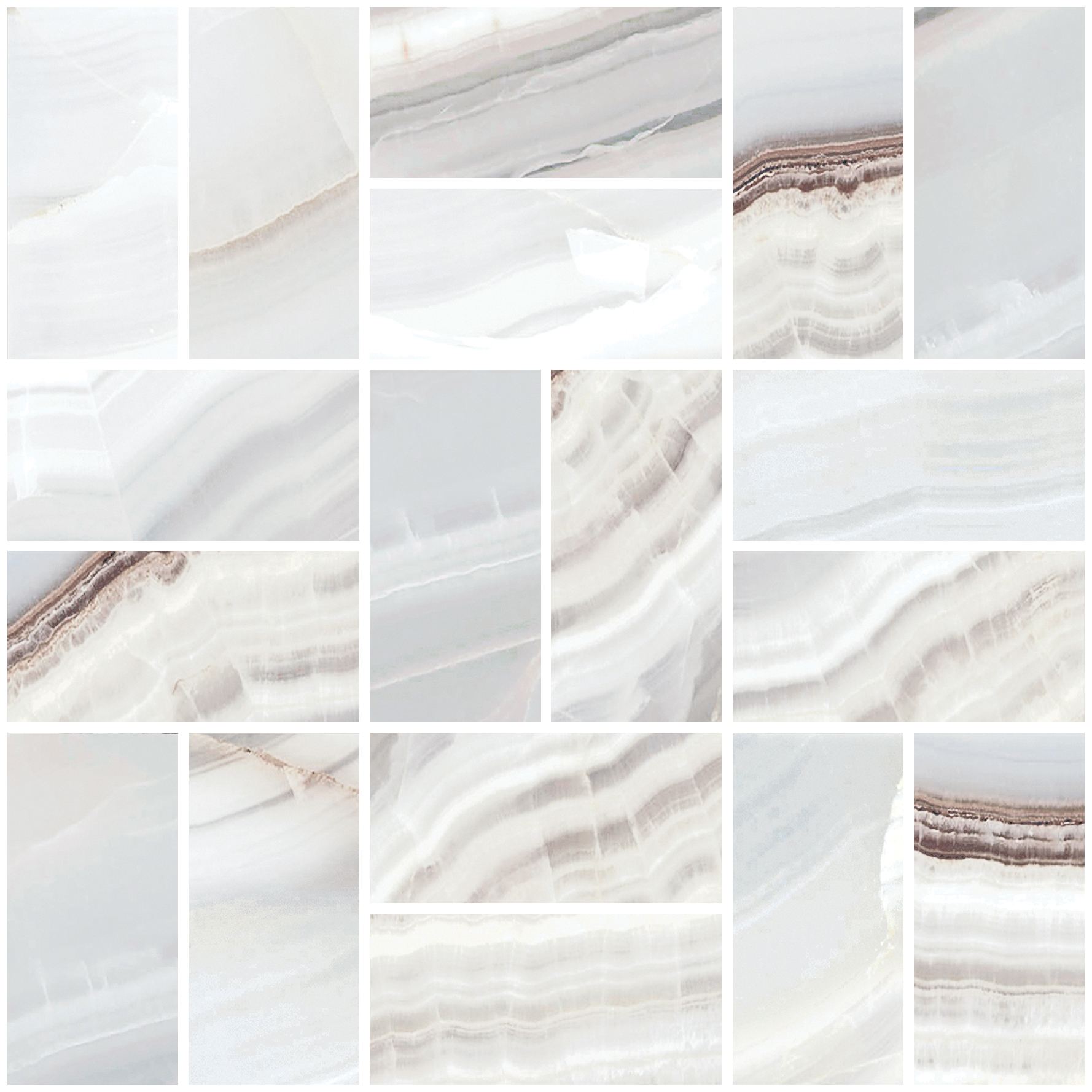 Натуральный камень оникс с завораживающими многослойными прожилками лег в основу лаконичной, но впечатляющей коллекции ONIX (ОНИКС). Высокая натуралистичность графики становится акцентом как в классическом, так и в современном дизайне помещения. Чтобы точно воспроизвести природную фактуру камня и сделать поверхность стены максимально естественной, в коллекции использовано до 10 различных рисунков плитки. Мозаика с прямоугольными элементами состоит из чередующихся фрагментов фоновой плиты.